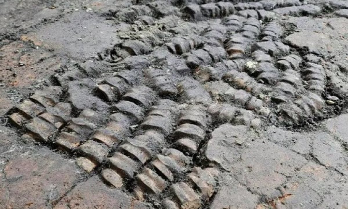 Os arqueólogos identificaram o piso de ladrilhos desgastados, intercalados com ossos de gado cuidadosamente cortados e organizados em um padrão geométrico preciso.