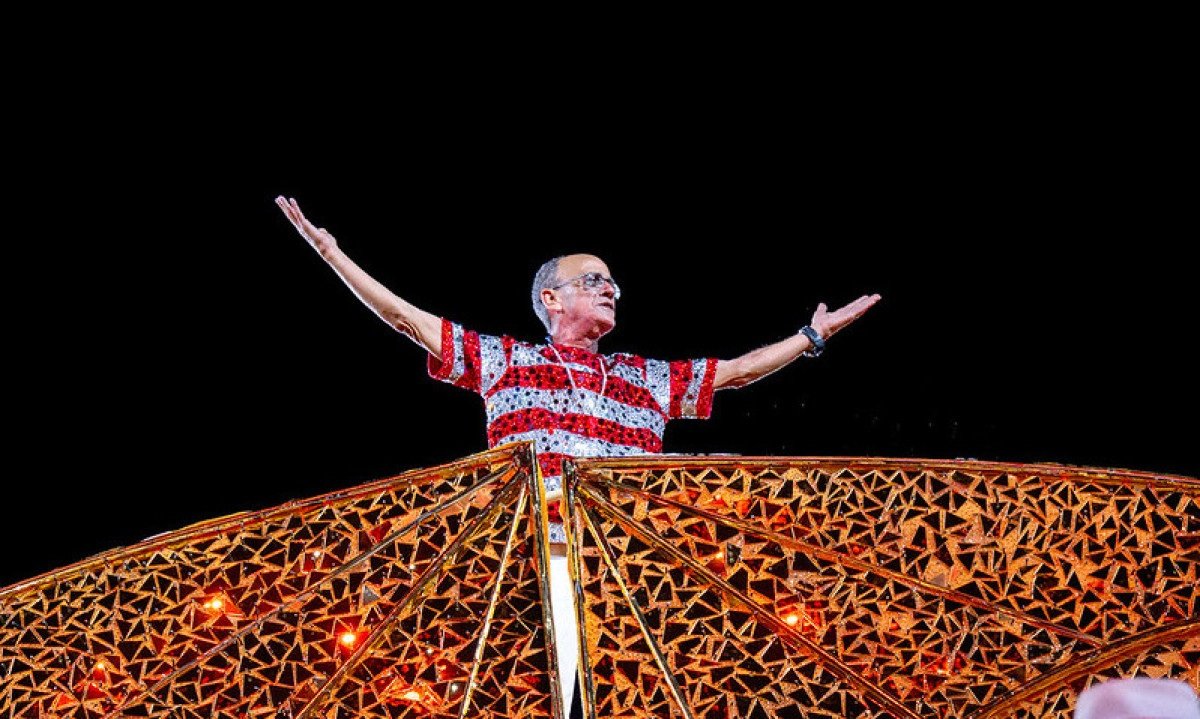 A festa mostrou diferentes momentos da carreira do mestre, recriando passagens marcantes em alas coreografadas que simulavam ensaios, bastidores e grandes noites do Carnaval carioca.