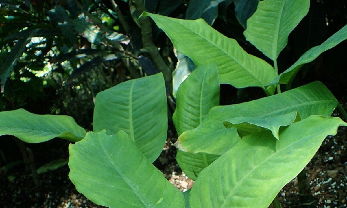 Comigo-ninguém-pode (Dieffenbachia spp.): Nativa da América Central e do Sul, é comum como planta ornamental em todo o mundo. Suas folhas contêm cristais de oxalato de cálcio, que podem causar irritação severa na boca e garganta.