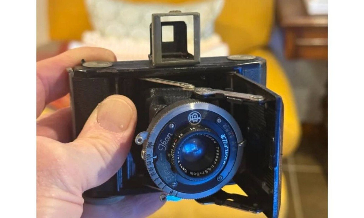 O equipamento era uma Zeiss Ikon Baby Ikonta, modelo compacto projetado para caber no bolso e que utiliza filme tamanho 127, formato lançado pela Kodak em 1912 e que começou a cair em desuso a partir de 1960 Foto: Salisbury Photo Centre. -