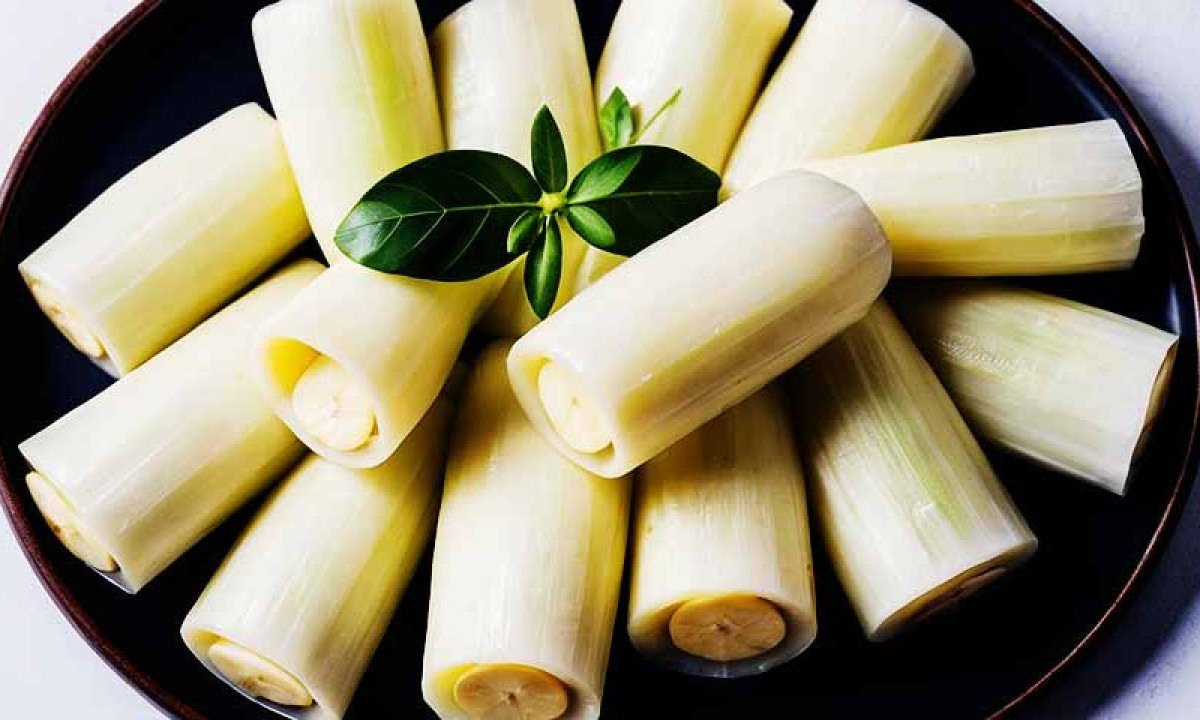 Trata-se, então, de um cilindro branco contendo os primórdios foliares e vasculares, ainda macios e pouco fibrosos. O legume vem do caule de algumas palmeiras, como açaí, juçara, pupunha ou bananeira.