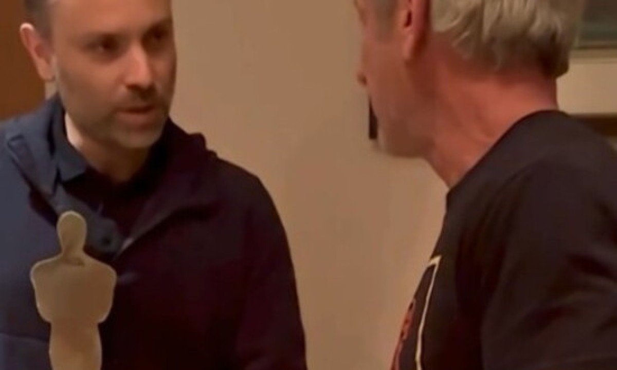 Como forma de agradecimento por seu apoio à Ucrânia, a estatal ferroviária do país entregou ao ator uma estatueta simbólica inspirada no Oscar, feita com metal retirado de um vagão de trem danificado por ataques russos.