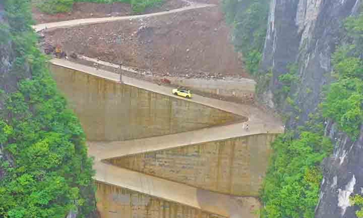 Rodovia em zigue-zague na China une perigo e beleza da paisagem