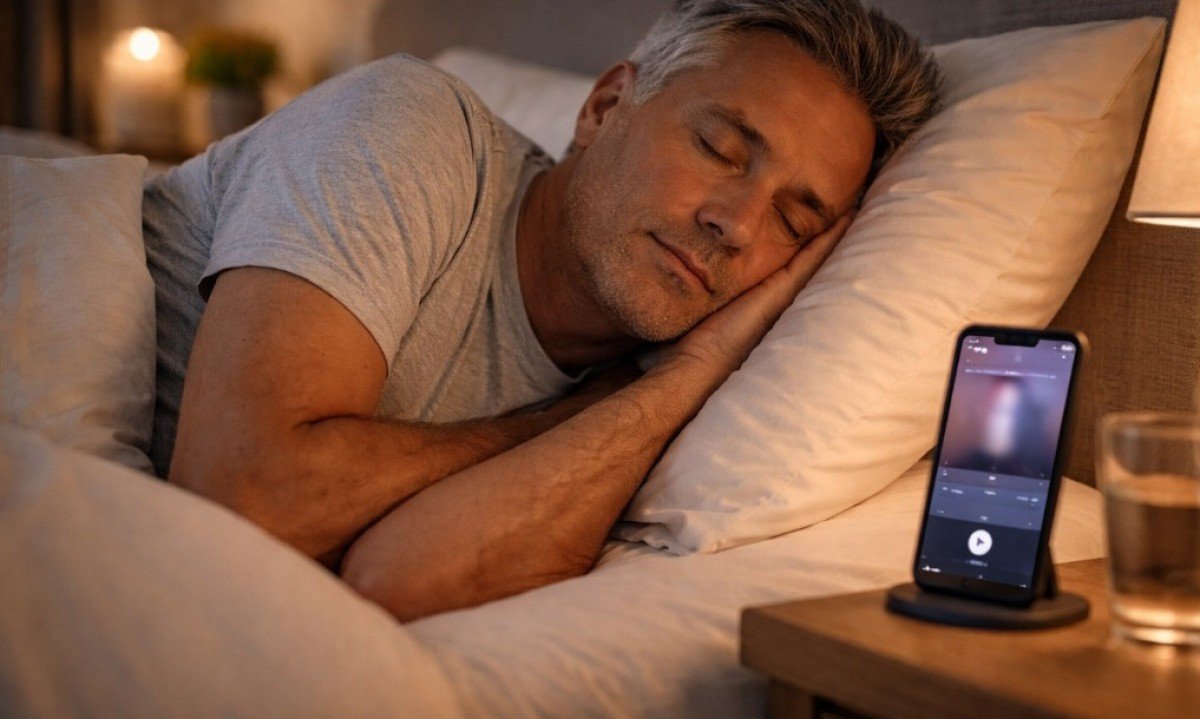 Por isso, dormir com podcasts, séries ou rádio pode deixar o sono mais superficial. O corpo descansa, mas o cérebro permanece parcialmente alerta. Foto: imagem gerada por i.a -