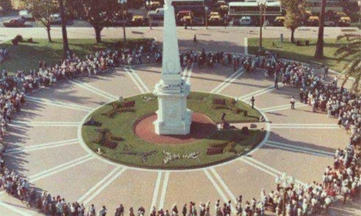 Após o fim da ditadura militar, a organização formada por avós de crianças desaparecidas passou a se reunir na Praça de Maio, no centro de Buenos Aires, como símbolo de resistência. Foto: Domínio Público/Wikimédia Commons -
