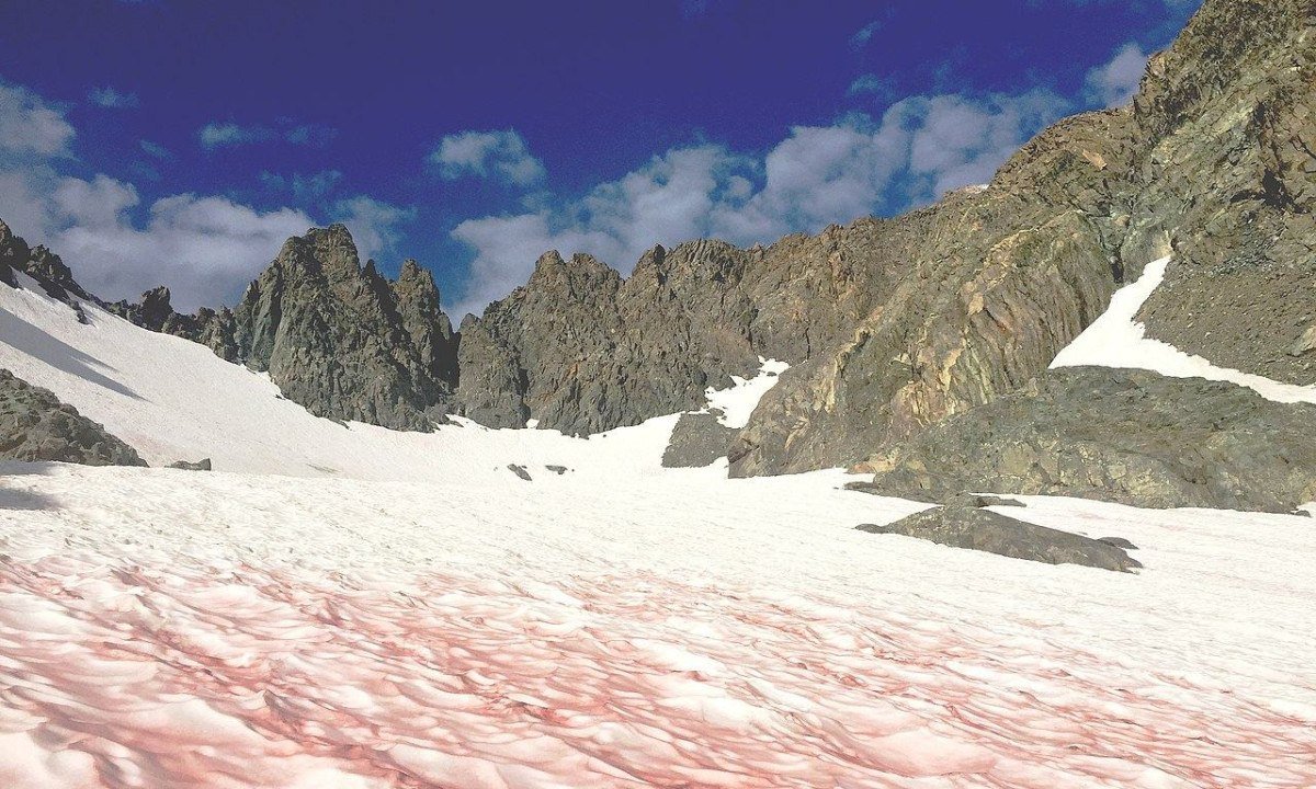 Esse fenômeno, porém, apresenta riscos para as geleiras, segundo biólogos, pois contribui para o derretimento da superfície. Isso acontece porque, à medida que a neve fica colorida, ela absorve mais luz solar em vez de refleti-la, o que acelera o degelo. Foto: Wikimedia Commons / Peretz Partensky -