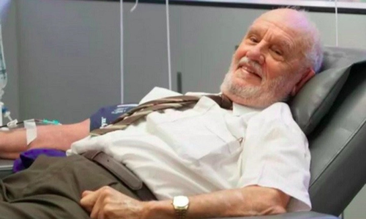 O plasma do sangue doado por James ao longo da vida foi fundamental para salvar a vida de mais de 2,4 milhões de bebês. Foto: Reprodução/Metro -