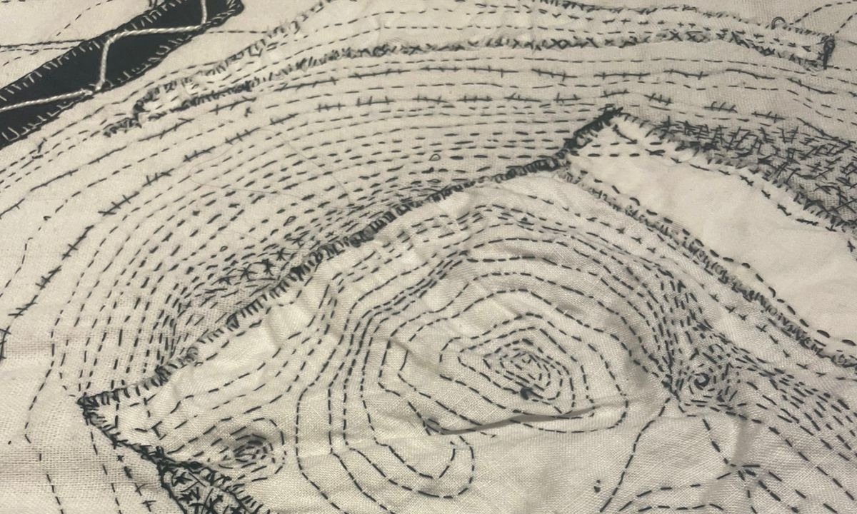 O conjunto apresentado é composto por dois ossos, nos quais Fani desenhou e escreveu, além de 25 peças de tecidos, com bordados ou pacthwork. Foto: Reprodução -