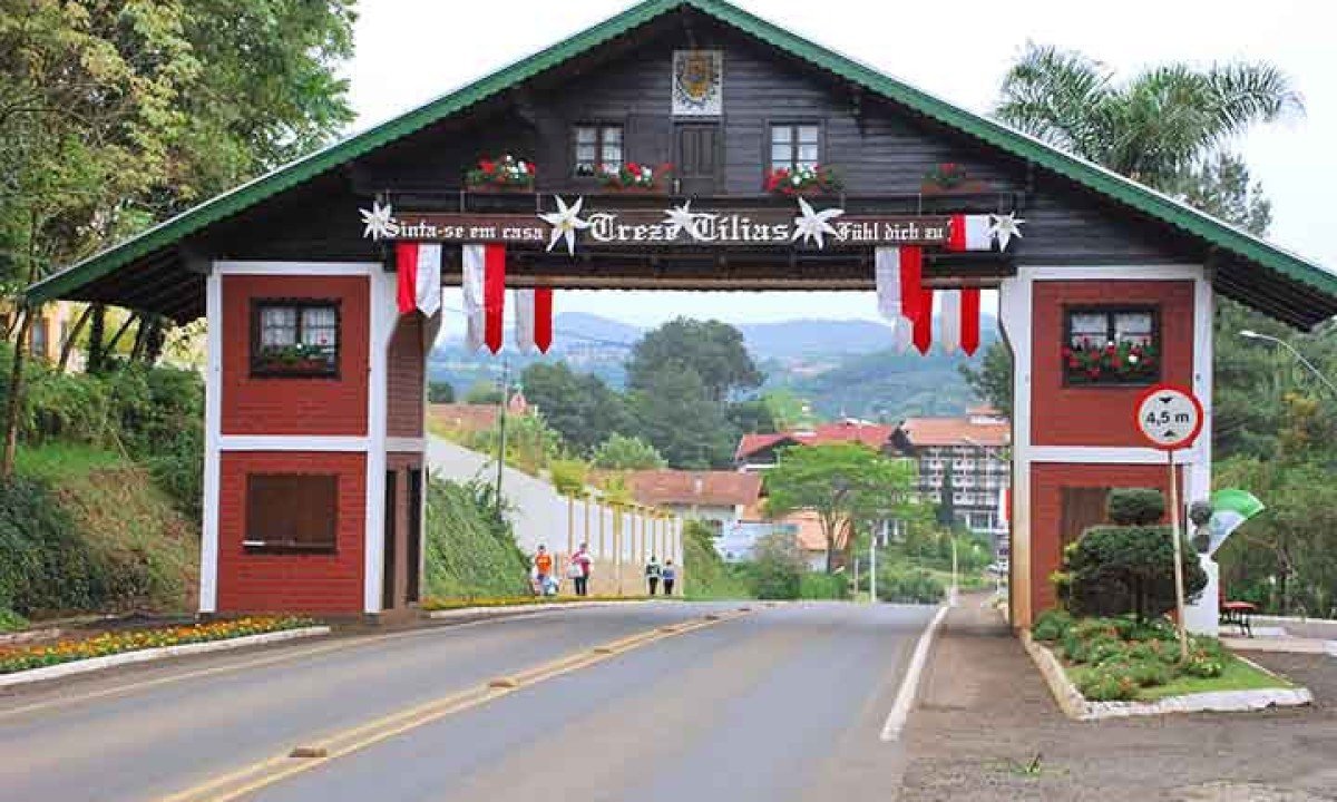 A história de Treze Tílias remonta a 1933, ano em que Andreas Thaler, que foi ministro da Agricultura da Áustria, estabeleceu uma colônia na região acompanhado de imigrantes que fugiam da crise econômica do período entre as duas guerras mundiais, com o fim do Império Austro-Húngaro. Foto: Reprodução do Flickr José Roberto Facco -