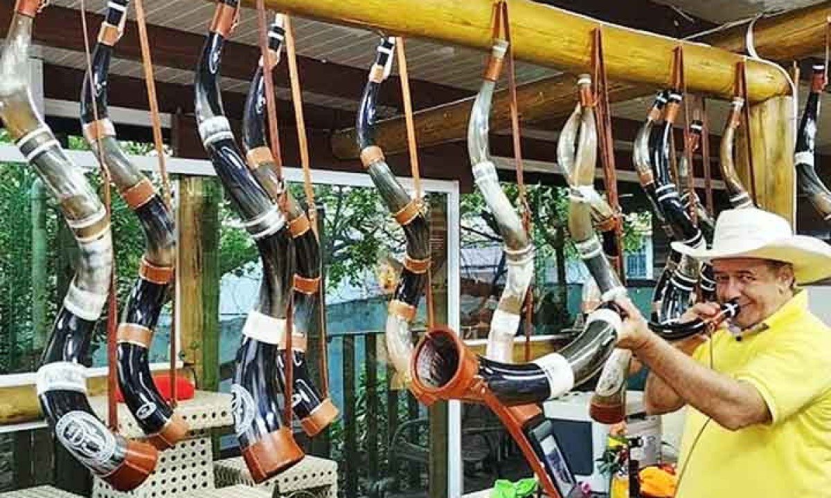Feito geralmente de chifre de boi, o instrumento é moldado artesanalmente. O tamanho influencia o timbre e a potência do som emitido. Foto: Reprodução do Youtube Canal Globo Rural -