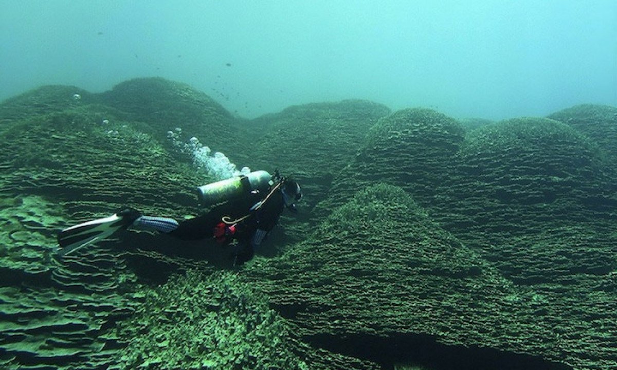 De acordo com a NOAA, a enorme escala da formação nas Ilhas Maug exigiu adaptações nos métodos de medição, já que limitações de segurança durante os mergulhos impediram avaliações diretas convencionais. Foto: Divulgac?a?o/NOAA Fisheries