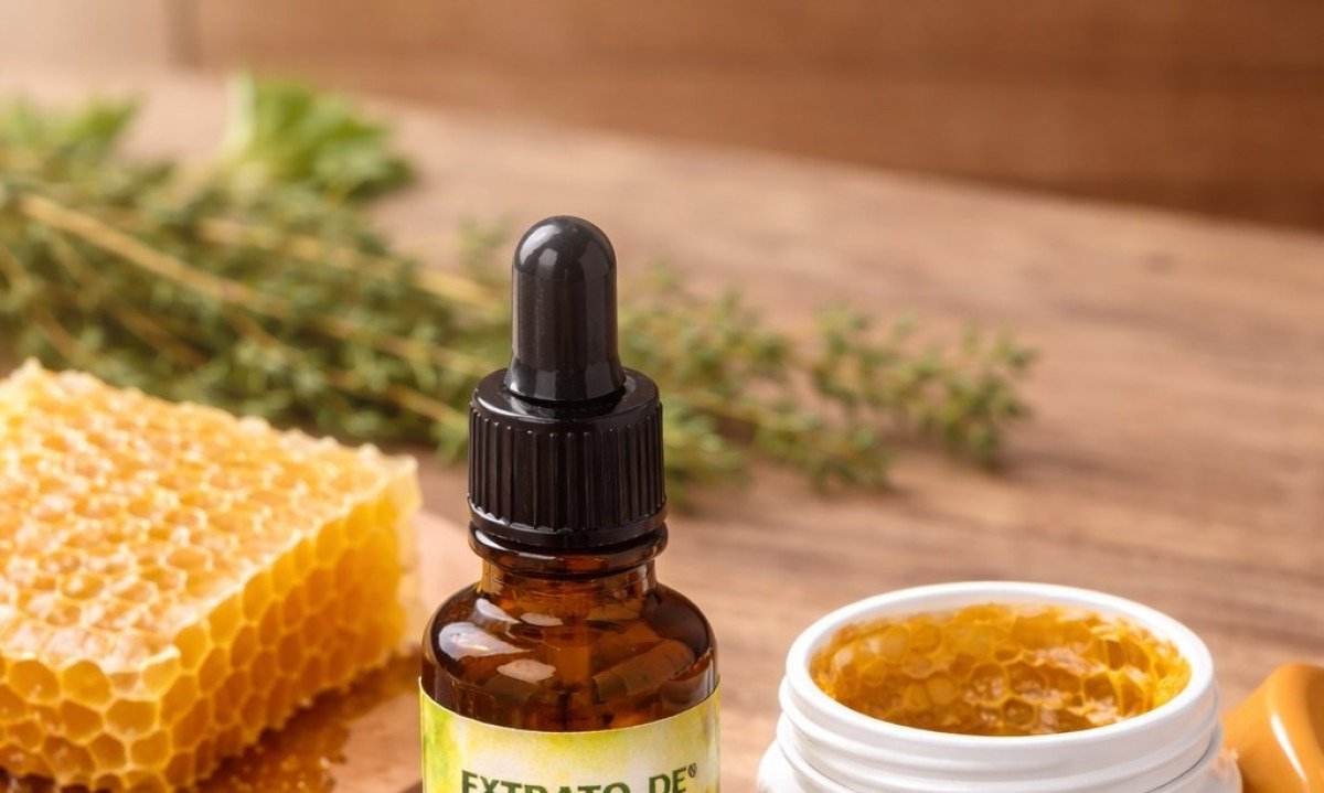 Em relação ao seu uso, o própolis pode ser aplicado diretamente na pele, especialmente em pequenas lesões, além de ser utilizado diluído em água para gargarejos e inalações. Também pode ser ingerido puro ou misturado a líquidos, como água, álcool ou chás, o que facilita o consumo no dia a dia. Foto: Divulgação -