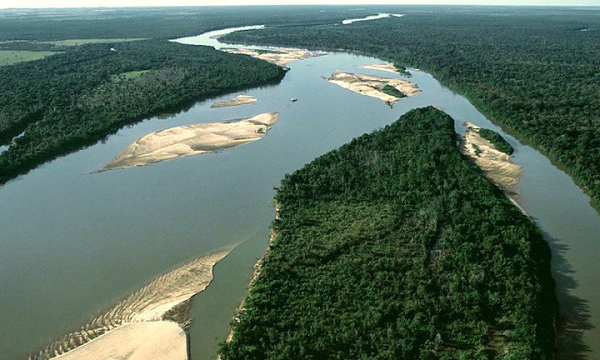 E estuário, quando o rio deságua em um único canal largo, geralmente influenciado por marés (ex.: Rio Amazonas). Foto: Flickr - Ministério da Defesa