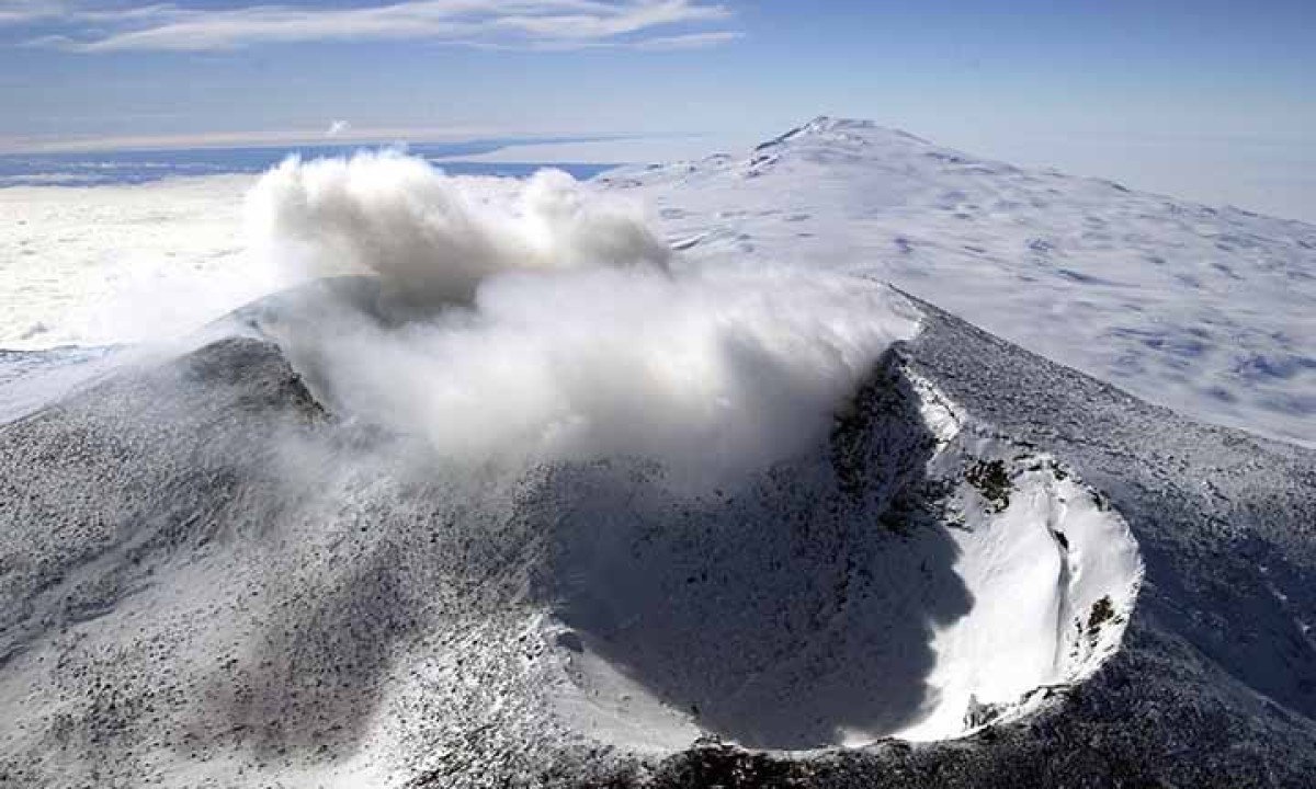 Em 2024, pesquisadores da Universidade de Columbia, nos Estados Unidos, calcularam que o Monte Erebus lançava cerca de 80 gramas de vapor de ouro cristalizado por dia na atmosfera. Esse valor, equivalente a aproximadamente 6 mil dólares, revela a riqueza escondida nas cinzas vulcânicas. As partículas viajam por grandes distâncias, já tendo sido encontradas a mais de 1.000 quilômetros do vulcão na Antártida. Foto: Reprodução do Flickr Ana Paula Hirama -