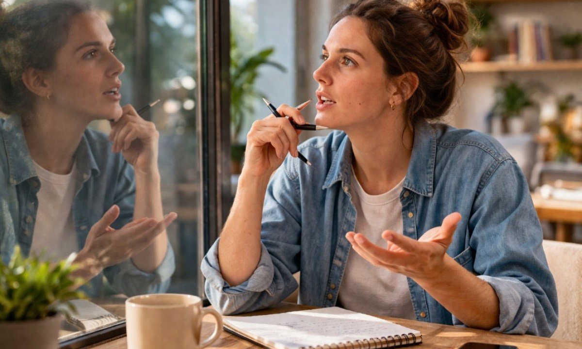A verbalização ajuda a reduzir a ansiedade e a dar nome aos sentimentos. Isso torna mais fácil lidar com situações difíceis ou inesperadas. Com o tempo, esse hábito pode até fortalecer o autoconhecimento. Foto: Imagem gerada por i.a -