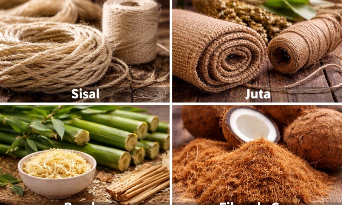 Cada fibra vegetal possui características próprias: o sisal é rígido; o bambu, flexível; o coco, absorvente; e a juta, leve. Essas diferenças determinam aplicações específicas em indústrias variadas. A diversidade estrutural impulsiona inovação e amplia possibilidades produtivas. Foto: Imagem gerada por i.a -