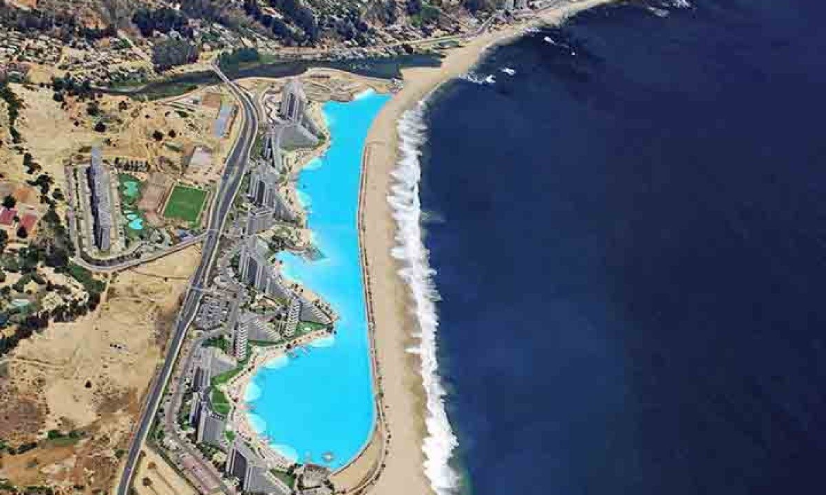 A cidade é considerada a "capital náutica do Chile", com várias opções de lazer como caiaque, vela e stand-up paddle na piscina gigante. Foto: - Reprodução do X @AquaEngineering -