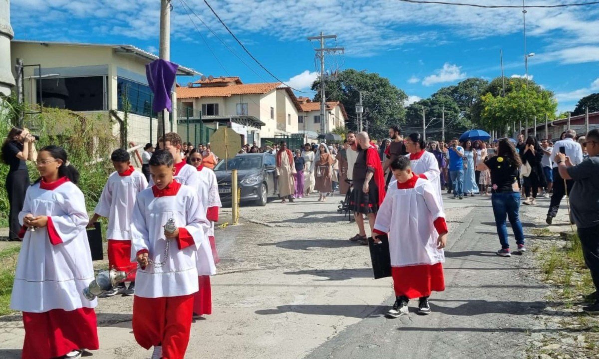 Veja fotos da via-sacra encenada no entorno da Catedral Cristo-Rei, no Norte de Belo Horizonte