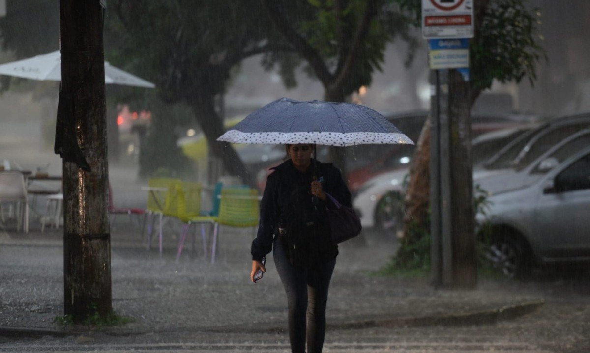 Chuva forte atinge Região Centro-Sul de Belo Horizonte na tarde desta quarta-feira (8/4). Alerta de granizo é válido por duas horas
