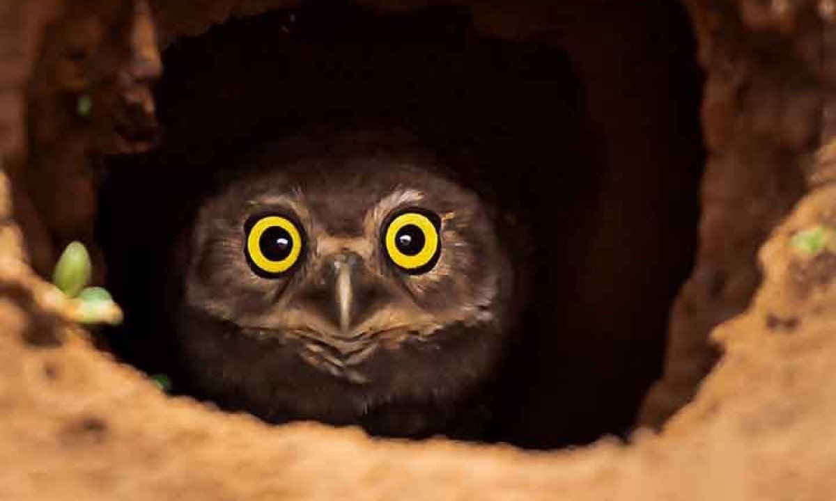 A coruja tem uma visão adaptada para a baixa luminosidade, sendo uma excelente caçadora noturna. Seus olhos grandes captam a mínima luz, permitindo que localize presas como roedores e insetos no escuro. Foto: -
