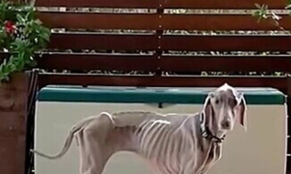 Essa enfermidade atingiu uma cadela chamada Harlow. Ela comia, mas, mesmo assim, perdia peso, tinha vômitos e ficava com letargia. As costelas chegavam a aparecer. de tanta magreza. Foto: Reprodução redes sociais -