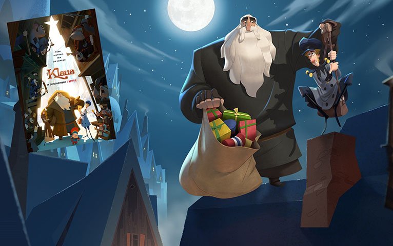 "Klaus", de 2019, conta a história de um carteiro que muda a história de uma cidade onde os moradores vivem brigando. É uma adaptação da lenda de Papai Noel. Como? Veja e entenda. Foto: Reprodução -