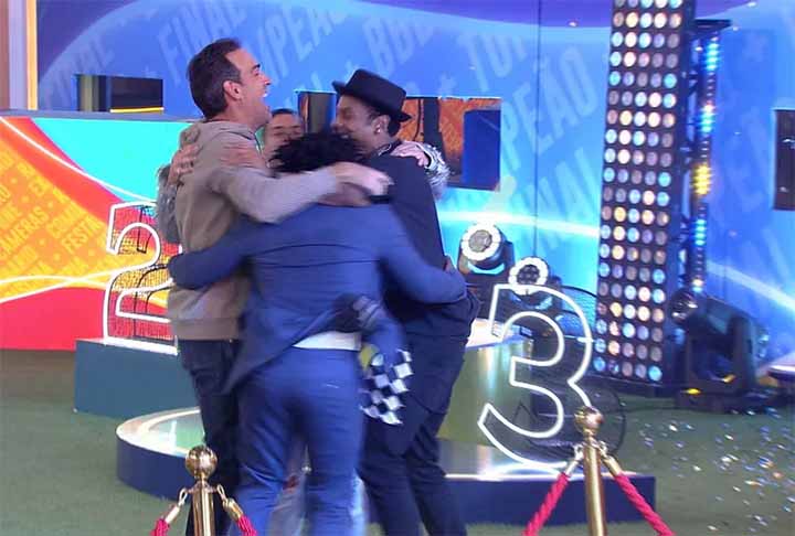 Com Tadeu Schmidt, o Big Brother Brasil teve os seguintes vencedores: o ator Arthur Aguiar (2022), a médica Amanda Meireles (2023) e o motorista de aplicativo Davi Brito (2024). Foto: Divulgação/Globo