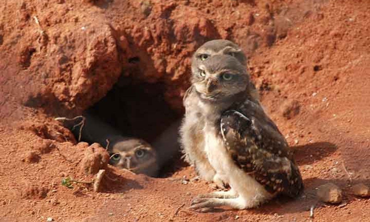 Coruja-buraqueira (Athene cunicularia): Em vez de construir ninhos em árvores, essa coruja cava buracos no chão para criar seu lar. Ela também se apropria de tocas abandonadas de outros animais, como tatus, e costuma decorar a entrada com esterco para atrair insetos que ela come. Foto: - Flickr Celso Santos de Castro Juniorrc -