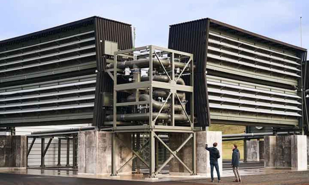 Batizada de Orca, nome do projeto de “captura aérea direta”, ela está instalada em região próxima à capital islandesa, Reykjavik. Foto: Divulgação -