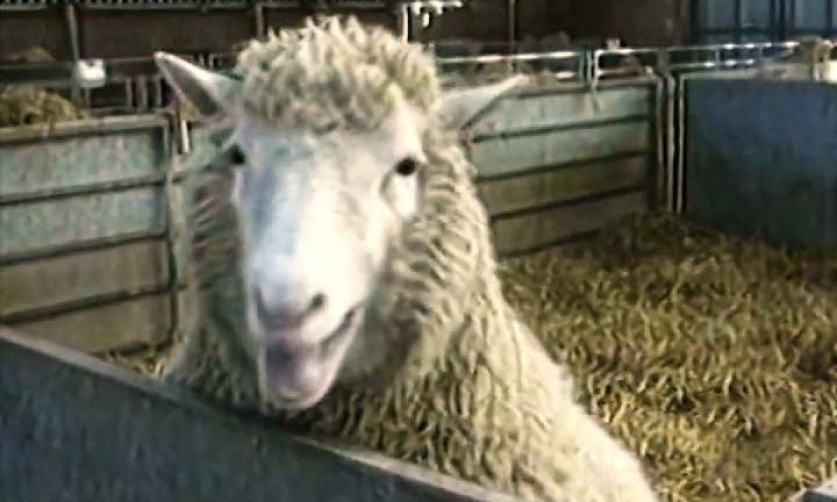 Dolly morreu em 2002, com seis anos e sete meses de idade, depois que os veterinários detectaram uma infecção em seus pulmões. Foto: Reprodução de vídeo TV Globo -