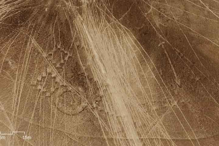 No solo árido do Deserto do Atacama, essas populações desenharam enormes figuras de pessoas, animais e objetos na areia. Foto: Instagram @fundacion_desierto_atacama -