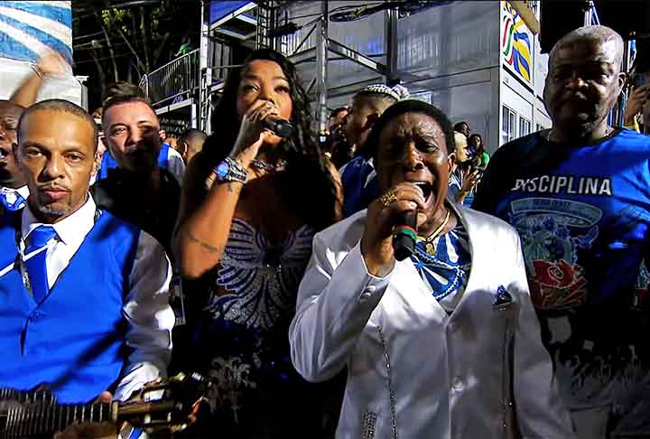 O lendário intérprete comanda a escola desde 1976 e foi a voz de todos os 14 campeonatos conquistados pela Beija-Flor até aqui. Neguinho também cantou na Unidos da Tijuca, em 1980, no Acesso, e esteve no carro de som da Mocidade Alegre, de São Paulo, em 1998 e 1999. Foto: Reprodução de vídeo TV Globo -
