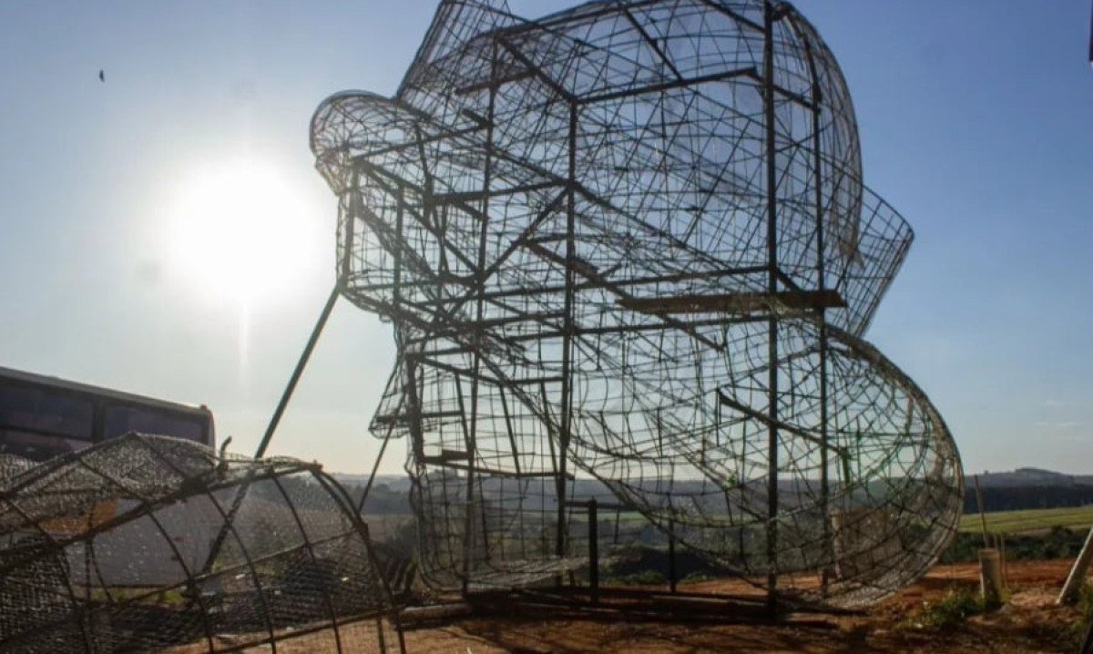 Originalmente planejada para ter 58m, a figura, construída por Markus Moura, teve seu tamanho ampliado após uma revisão. São 32m a mais do que o Cristo Redentor - o ponto turístico carioca tem 38m de altura (30 da estátua e oito da base). Foto: Divulgação -