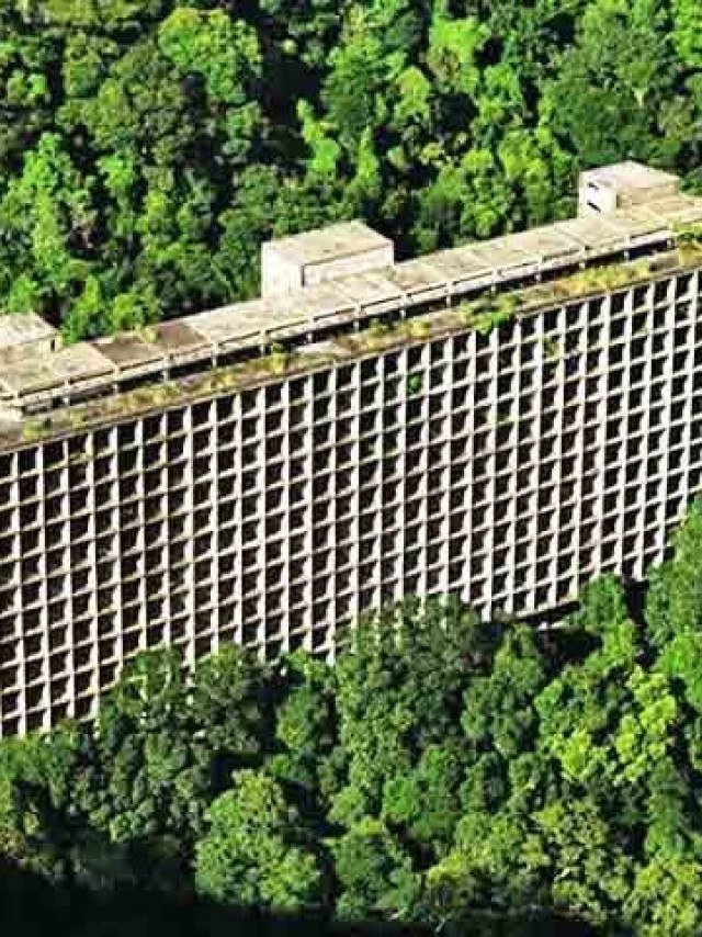Projetado em 1953 para ser um sÃmbolo de luxo, o empreendimento faliu nos anos 1970 após diversas crises financeiras. Foto: - Reprodução do X @SensesAtlas -