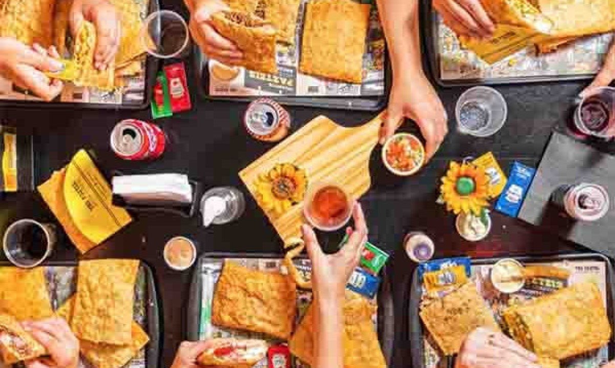 O diferencial do serviço é permitir que os clientes escolham até três ingredientes para montar seus próprios pastéis, com direito a repetições e bebidas à vontade, como caldo de cana. Foto: Instagram @thepazteloficial -