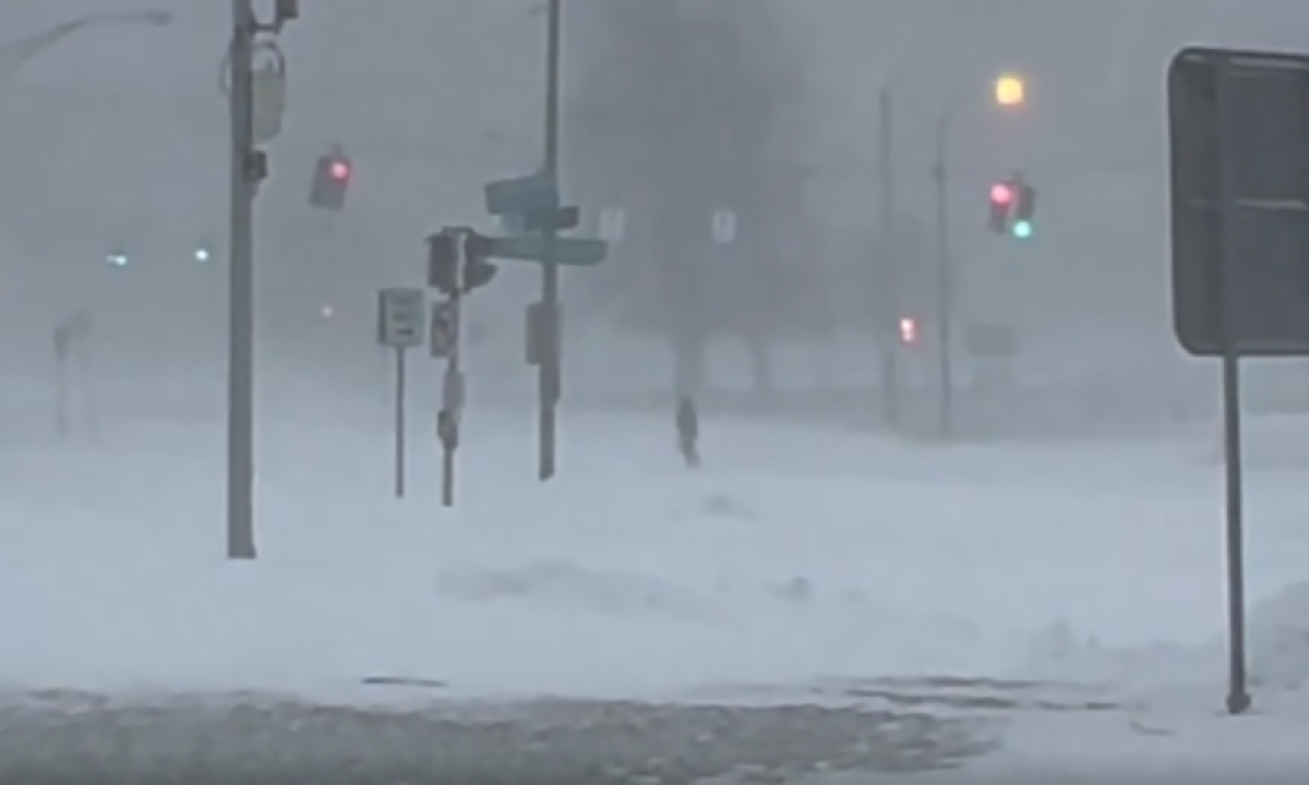 A visibilidade fica extremamente reduzida e as ruas se tornam proibitivas. Em 2022, a situação ficou tão grave que a tempestade levou o título de Nevasca do Século. Foto: Reprodução de TV -