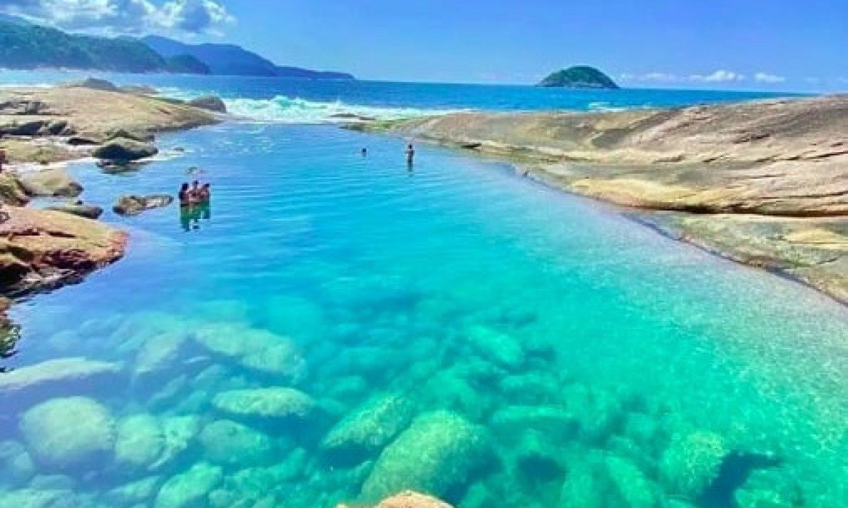 Praias como a Praia do Cachadaço (foto), com suas piscinas naturais, e a Praia do Meio, cercada por mata atlântica, são verdadeiros tesouros. Foto: Reprodução/YouTube Trip Partiu -