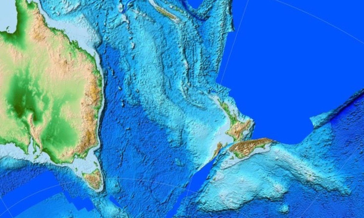Também conhecida como Continente Zelândia ou Tasmantis, a Zelândia é um continente quase totalmente submerso no Oceano Pacífico Sul. Foto: Domínio Público/NOAA -
