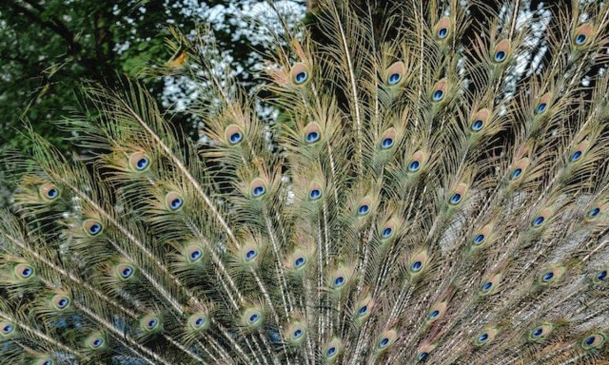 Pavão-Comum- Nativo da Índia. O macho pode pesar até 5,5 kg e medir cerca de 1 metro. Reconhecido por sua deslumbrante exibição de plumagem no ritual de acasalamento - referência de beleza na fauna - o macho abre sua cauda em forma de leque para atrair as fêmeas. Foto: Imagem de Daniel Borker por Pixabay -