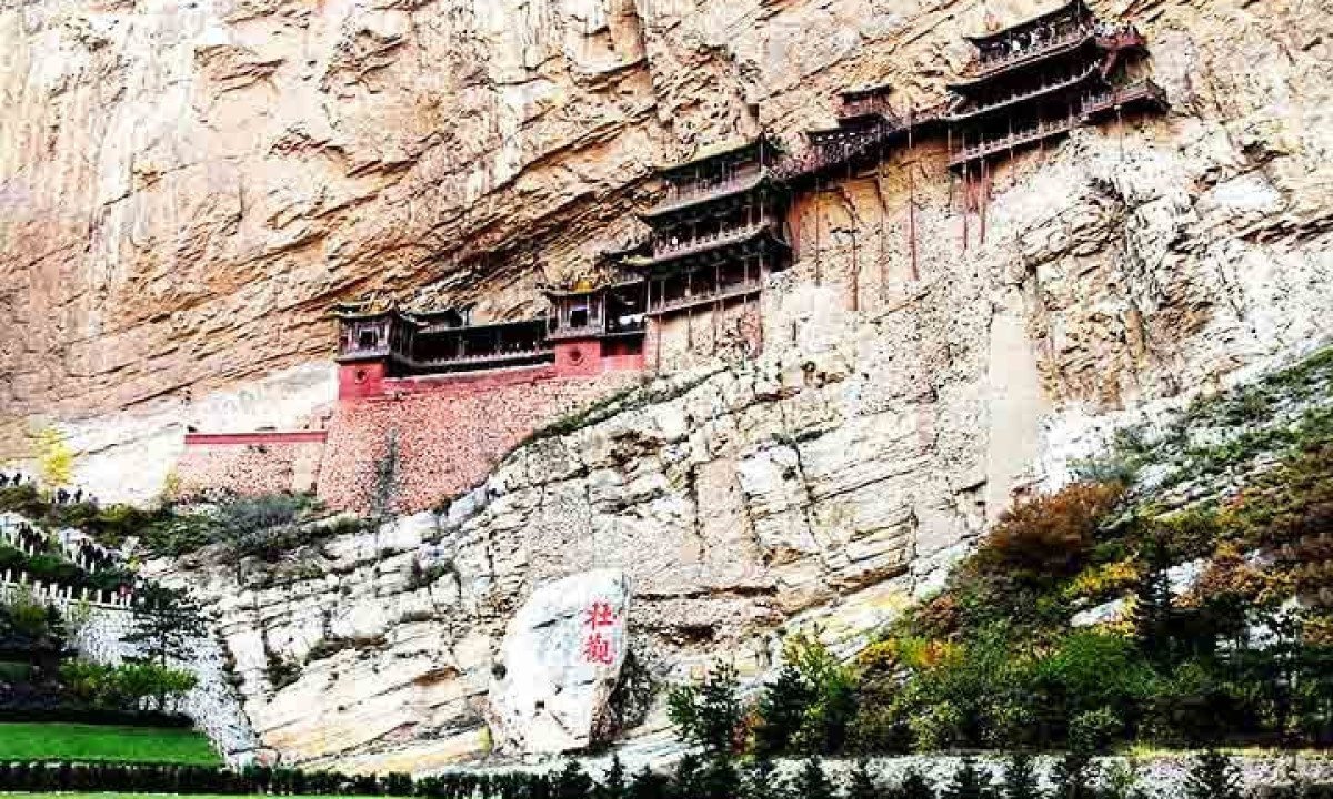 O mosteiro foi erguido em um precipício de 75 metros de altura, em meio a uma vasta natureza. A cidade mais próxima é Datong, localizada a cerca de 65 km de distância. Foto: Charlie fong/Wikimédia Commons -