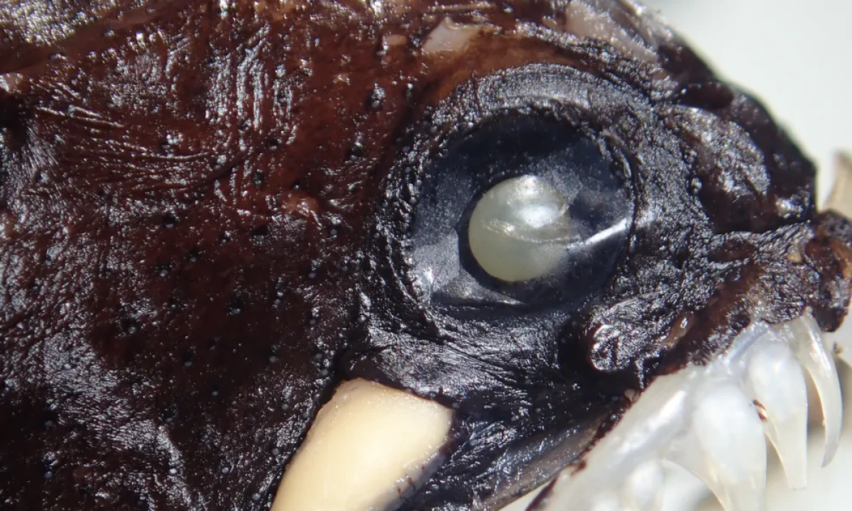 A Melanostomias dio foi coletada no entorno do Arquipélago de Fernando de Noronha e possui o barbilhão diferente de todas as demais espécies do gênero, uma estrutura luminosa na extremidade, cujo formato lembra o gesto da “mão-chifrada”. Foto: Reprodução de vídeo TV NE2 -