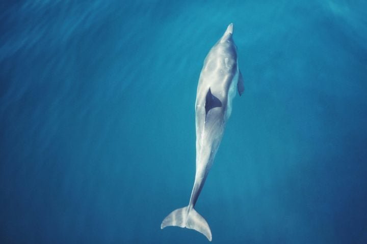 Os golfinhos têm um orifício para controlar a respiração. Funciona como uma válvula, que se abre quando o animal sobe para respirar e se fecha quando ele vai submergir. Foto: Imagem de Alexander Derevyashkin por Pixabay -