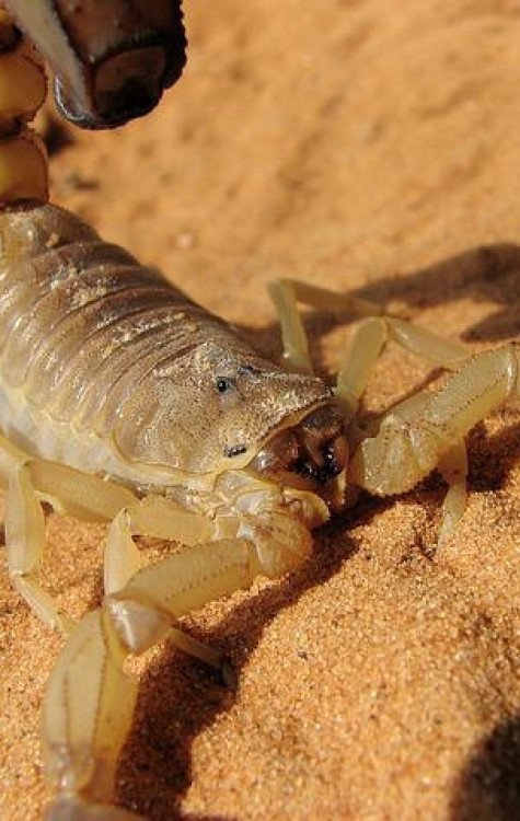 Escorpião-amarelo - Seu veneno é ainda mais forte que o do escorpião-marrom. Ele mede cerca de 7 cm. Ambas as espécies podem causar danos ao sistema nervoso, dor, bolhas na pele, tosse, vômito e falta de ar. Foto: Fernanda/Wikimedia Commons -