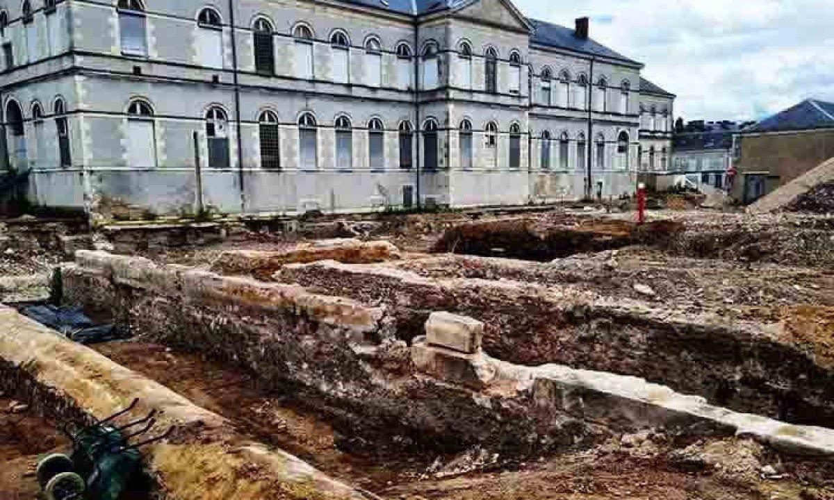 O cemitério, localizado abaixo de um hospital do século 18, chama a atenção por características atípicas, como a posição dos túmulos, a presença de tinta nos caixões de madeira e a ausência de vestígios de cremação. Foto: Serviço Arqueológico de Orléans -