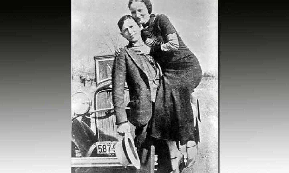 Ao volante de um Ford V8 roubado e armados, tornaram-se os maiores inimigos das autoridades norte-americanas, que começaram a considerar impossível apanhá-los. Entre assaltos e homicídios, chegaram a conseguir libertar cinco presos da cadeia de Eastham, no Texas. Foto: Divulgação -