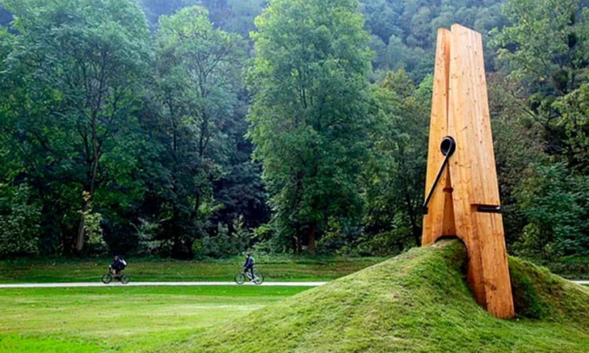 Tour de France - França - O maior campeonato francês de ciclismo ganhou um monumento divertido, com 18m de altura, que representa o terreno irregular da prova. A escultura muda de cor com a vibração do vencedor. Fica na Cordilheira dos Pireneus, na fronteira com a Espanha. Foto: reprodução The World Geography -