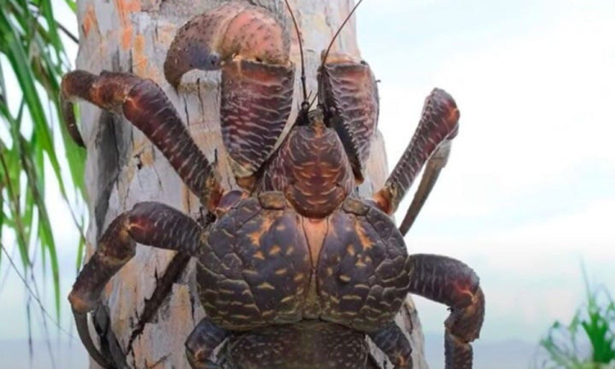 Uma das características mais marcantes desse artrópode é sua habilidade de escalar palmeiras conseguir cocos, que são parte importante de sua dieta. Foto: iNaturalist/Lennart Hudel -