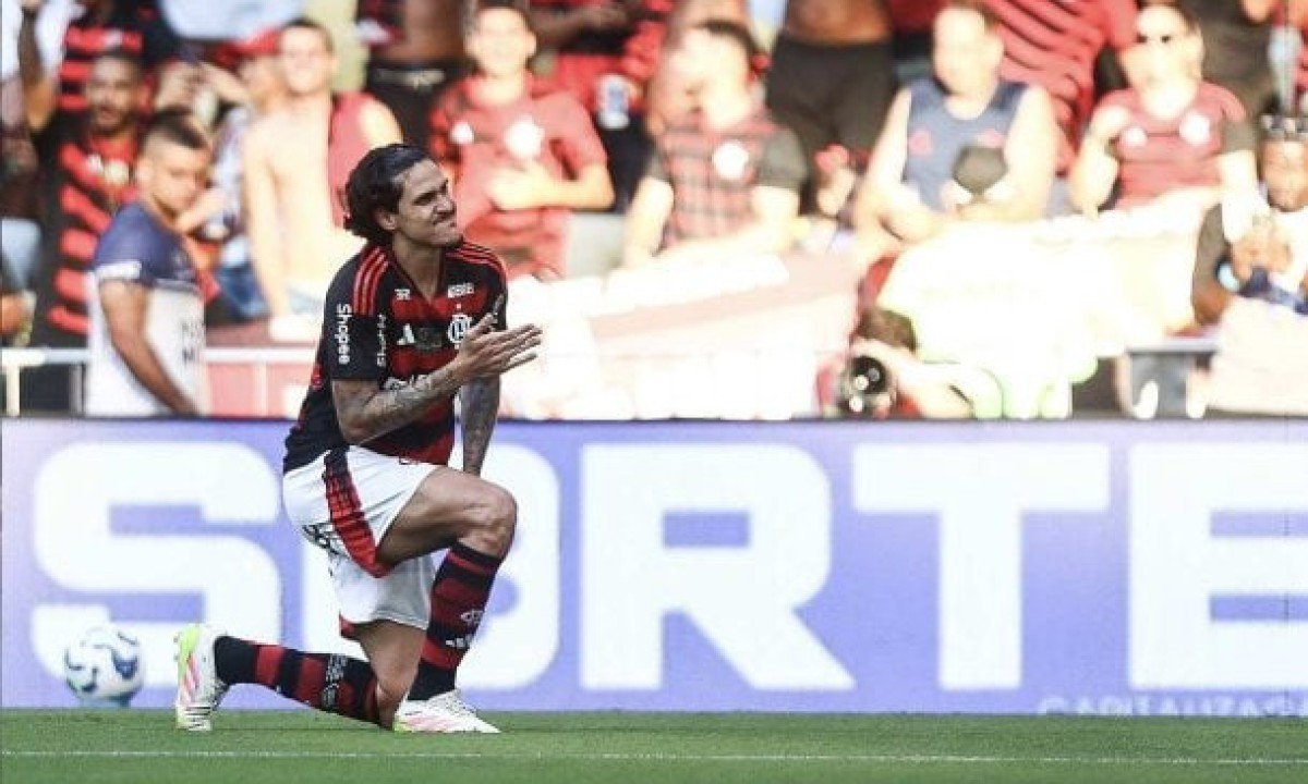 PEDRO – Voltou a ser titular em grande estilo. Mandou muito bem fazendo o papel de pivô, como no lance em que tentou uma calcanhar para finalização de Arrascaeta e no passe para Arrasca fazer o segundo gol do Flamengo. Além disso, cabeceou uma na trave, fez um gol de muito oportunismo e quase deixou outro em lance que Hugo salvou. Se entrasse, era para Prêmio Puskás. No segundo tempo, fez mais um, de pênalti. Excelente. NOTA 9,0. Foto: Gilvan de Souza/Flamengo Foto: Gilvan de Souza/Flamengo -
