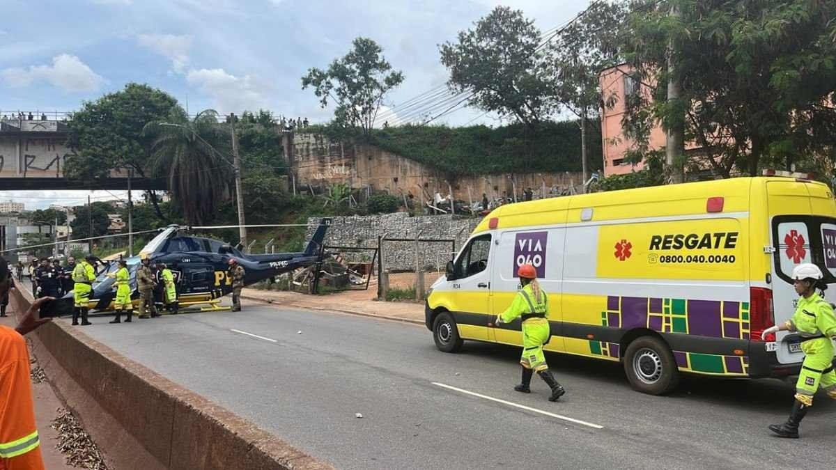 Helicóptero da PRF precisou fazer pouso forçado no Anel Rodoviário em BH