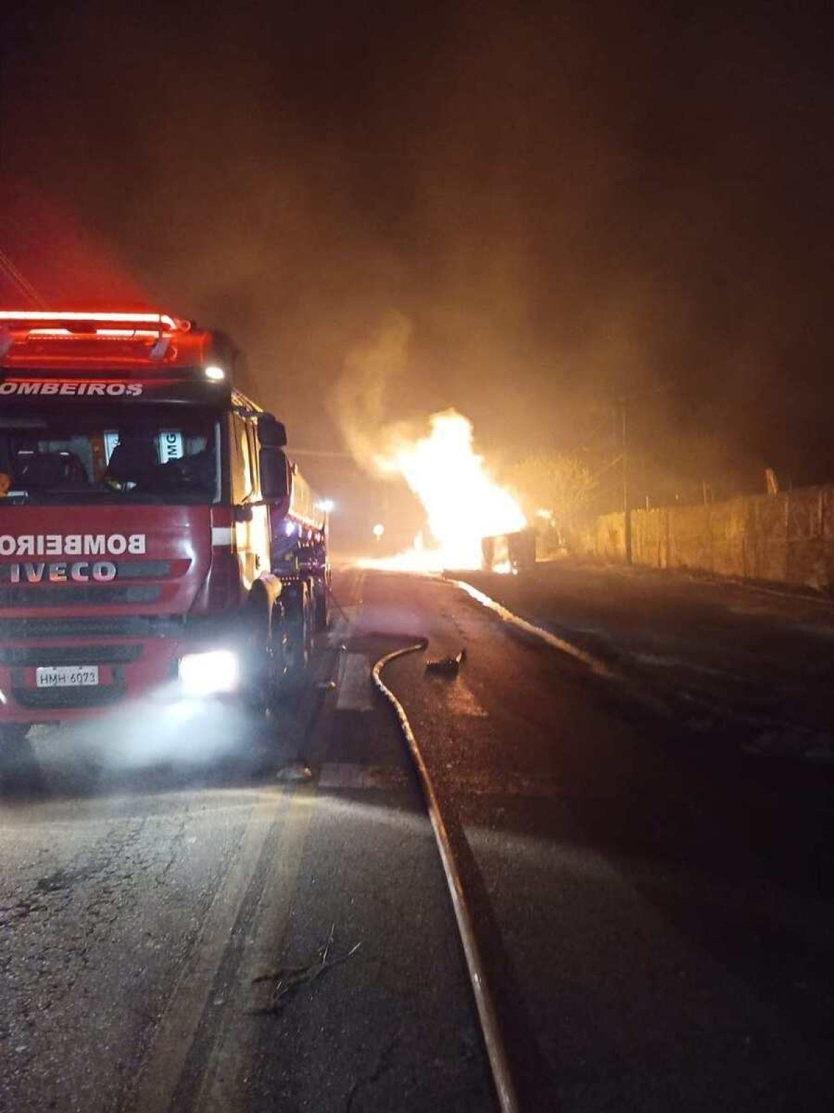 Corpo de Bombeiros foi acionado às 2h25 para controlar incêndio em caminhão-tanque no Anel Rodoviário